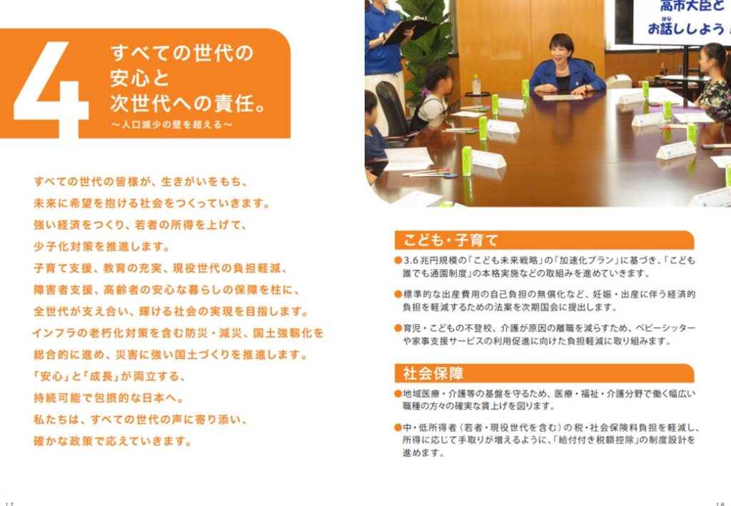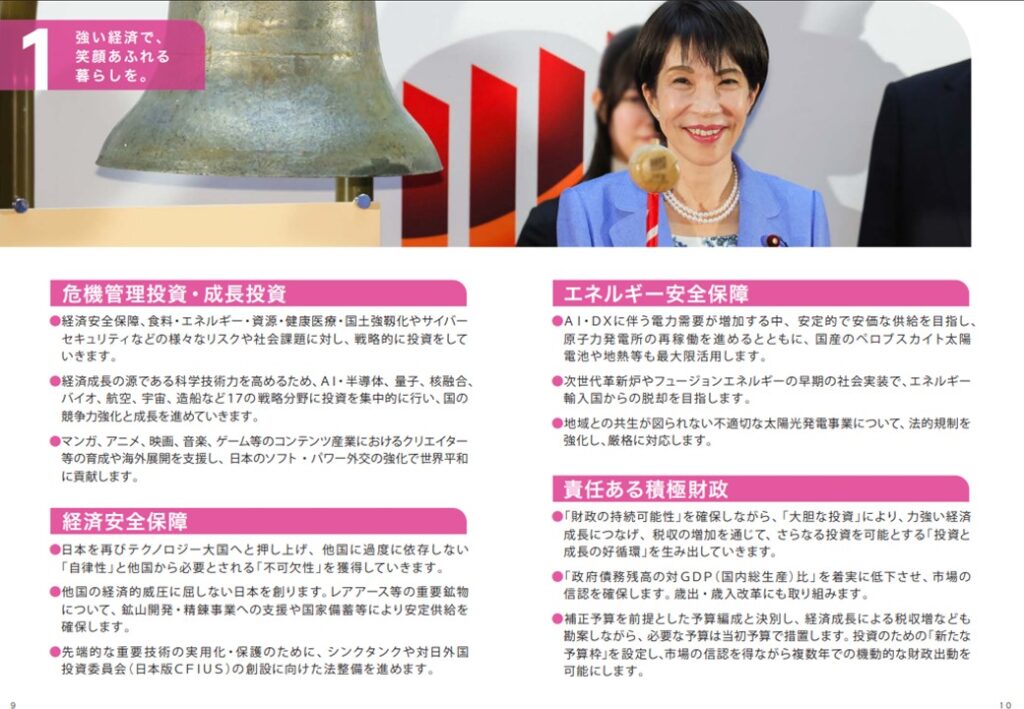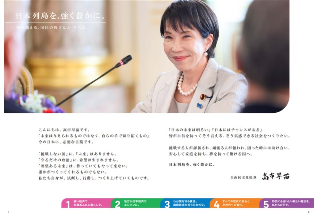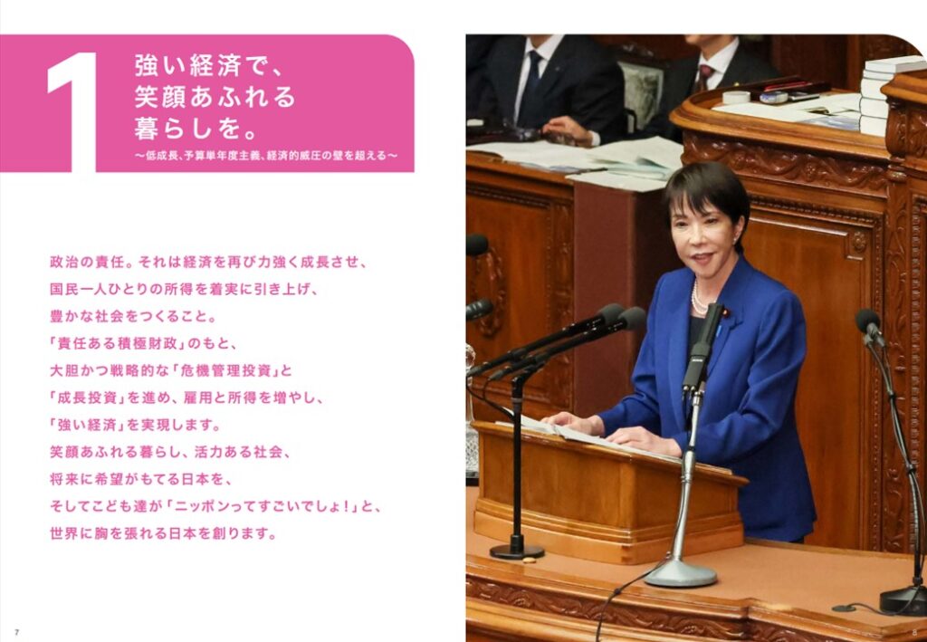 【公約の2ページ目は自由民主党総裁高市早苗の言葉】