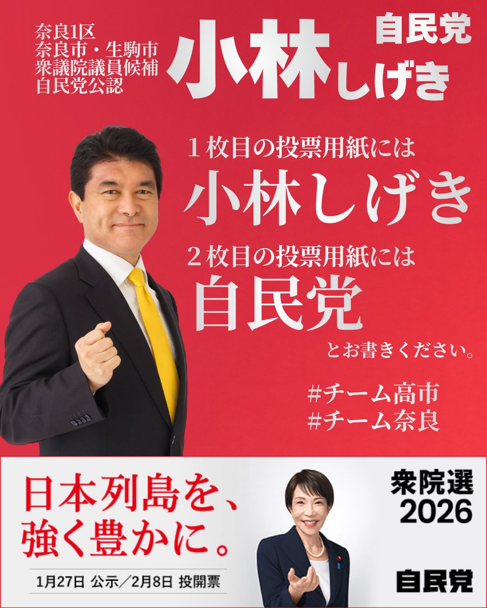 衆院選2026、奈良1区期日前投票のご案内です。 期日前投票とは? 選挙における投票は、投票所に投票日に行き、投票することが原則です。 しかし、投票日に仕事や旅行・出産や入院等で投票が難しい方もおられます。 … 続きを読む 衆院選2026、期日前投票のご案内