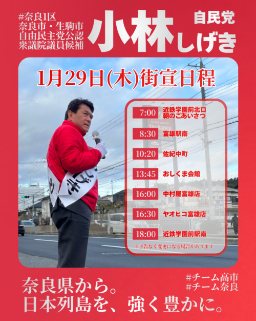(1月28日活動報告)衆院選奈良1区生駒市を回りました!